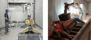 Cet outil est puissant et s’adapte à chaque situation. Le robot peut être ainsi équipé d’un marteau piqueur , d’un godet mais également utiliser une pince à béton permettant la démolition des murs, dalles et escaliers en béton armé sans bruit, avec un minimum de poussière et en totale sécurité.